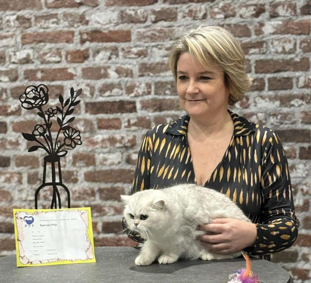 Alouette is het lieve dochtertje van Julia, één van onze eigen poezen, en een katje dat al op jonge leeftijd wist te schitteren. Tijdens haar eerste show werd ze uitgeroepen tot “Favoriet van de keurmeester”, een titel die perfect past bij haar zachte uitstraling en elegante aanwezigheid.